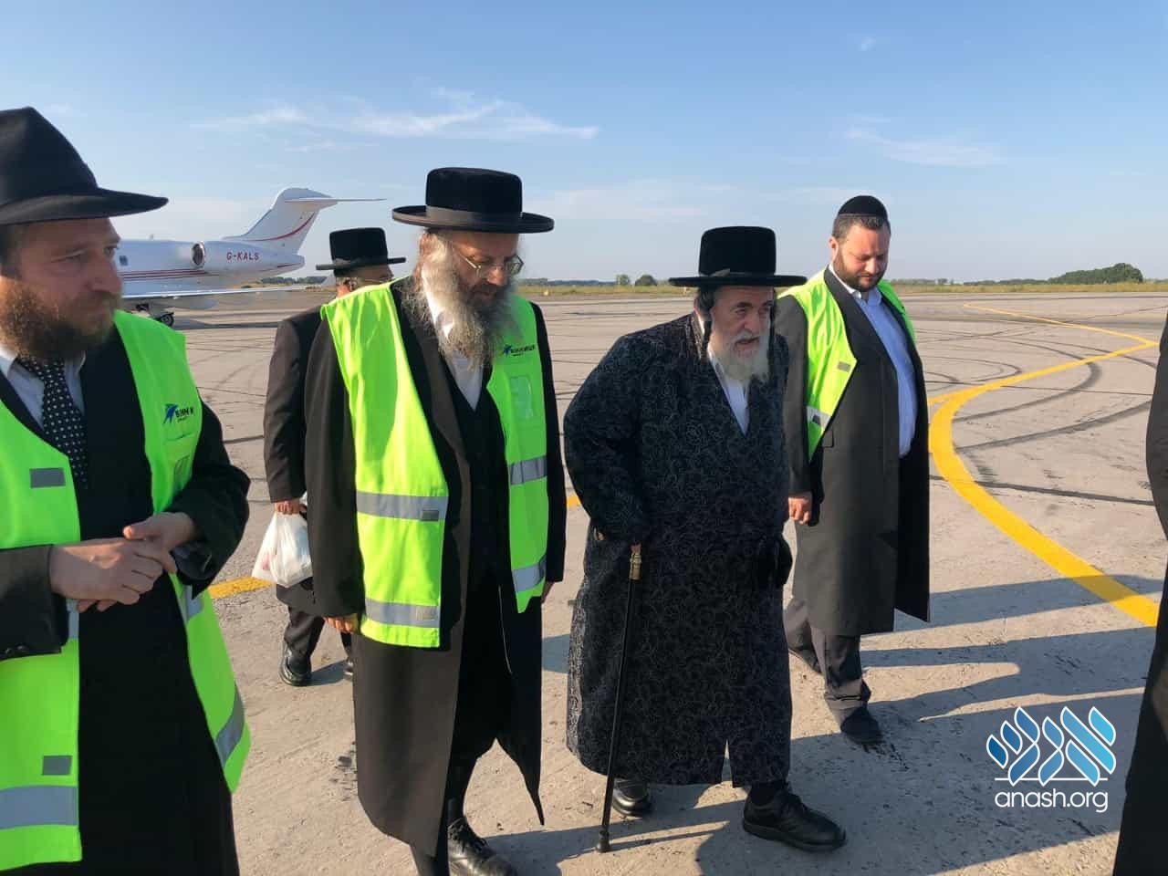 The Vizhnitzer Rebbe of Bnei Brak, Rav Yisroel Hager, arrives at Vinnitsa airport in Ukraine, today. He was greeted by Rabbi Shaul Hurvitz, rov and shliach in Vinnitsa, as well as by Rabbi Yisroel Meir Gabbai of “Oholei Tzaddikim” and askan Rabbi Nachmam Steinberg.