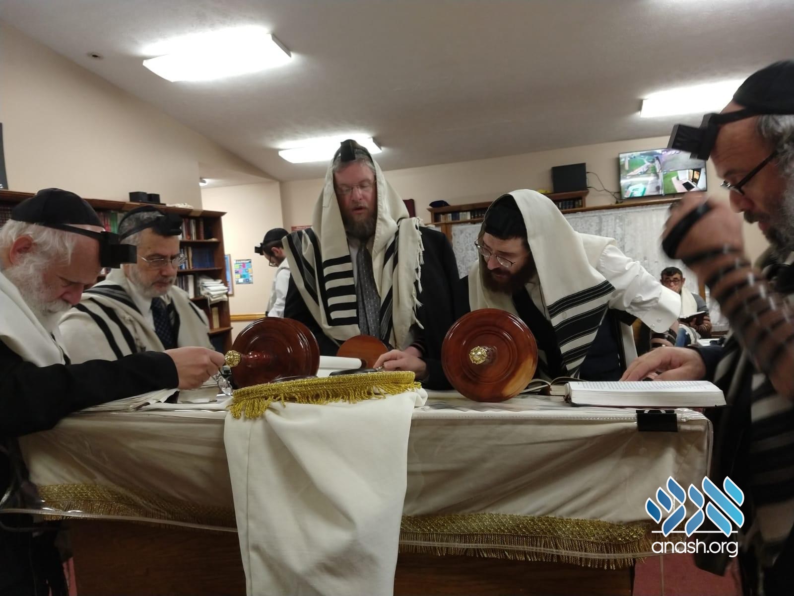 Rabbi Menachem Geneck, CEO of the OU Kosher Division and Rabbi Mordechai Stareshefski, Daven Shacharis at the Chabad House of Western Michigan Thursday morning. They are in the area to oversee the koshering of a large facility nearby.