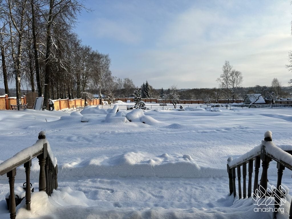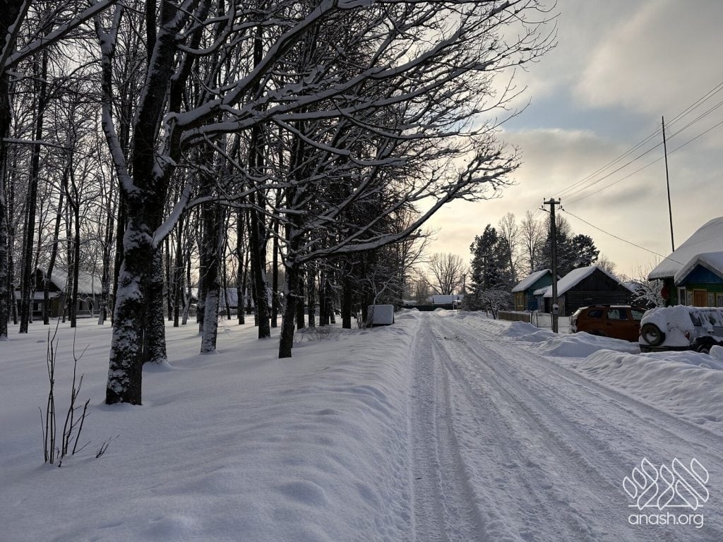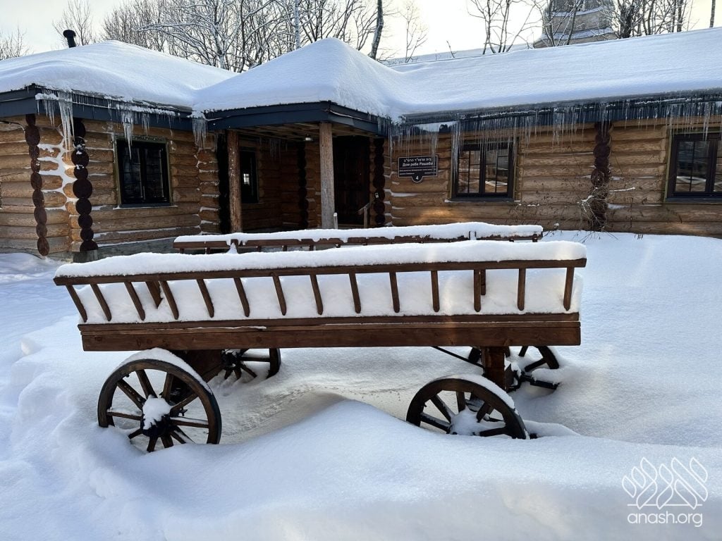Shliach Rabbi Gavriel Gordon captured photos of the town, the chotzer, and the newly rebuilt Zal and homes of the Rebbeim, all covered in snow, lending an imagination to what it was like in the middle of the Russian winter.