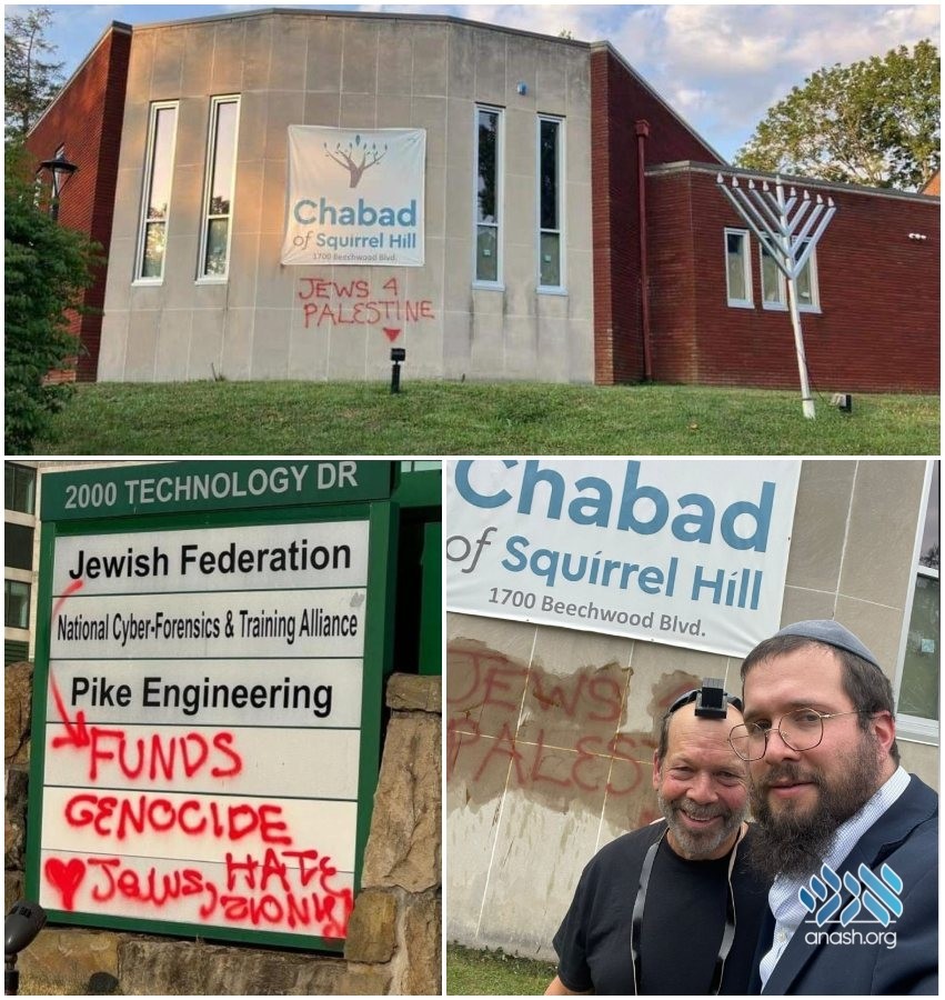 Chabad of the Squirrel Hill neighborhood of Pittsburgh, led by shliach Rabbi Yisroel Altein, and the local Jewish Federation, were defaced on Monday with hateful antisemitic messages and symbols.