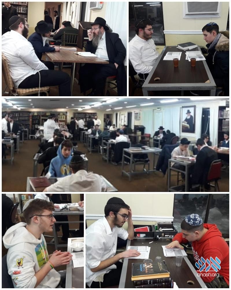 Two Chabad yeshivos located in the Pocono Mountains joined together Tuesday night for a night of learning in preparation for Purim.