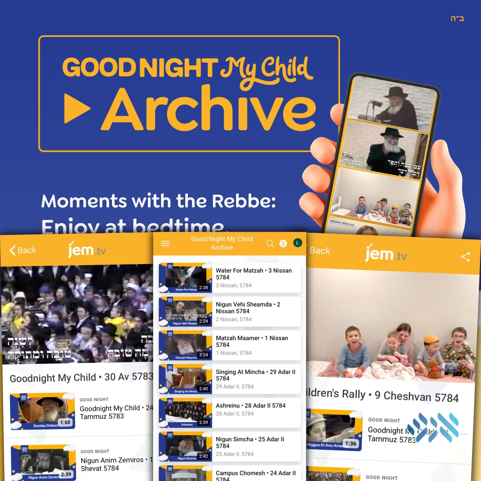 “Good Night My Child” is a nightly video of the Rebbe geared to children. Ahead of Yud Alef Nissan, JEM is upgrading the experience with all new features.