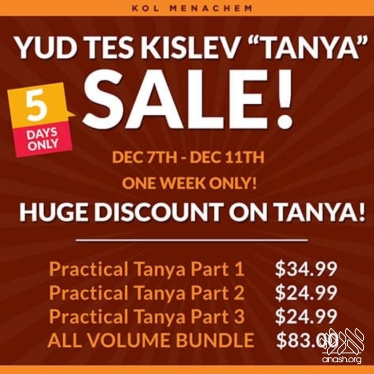 ‘Practical Tanya’ Yud Tes Kislev Sale