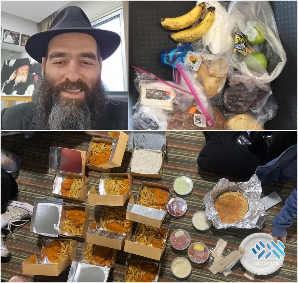 It took a little while but BH Chabad Rabbis Raskin and Levitin came to the rescue with a package of food for them! The girls also used their vouchers and found some kosher snacks and water BH.
