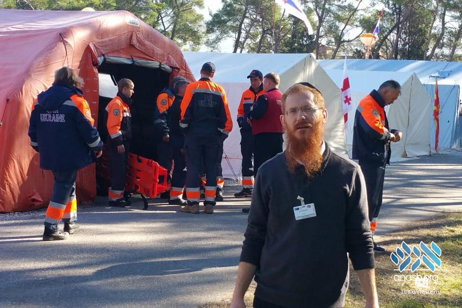 As searches continue among the rubble, about 2,500 people have been displaced. Many are sheltering in makeshift tent camps, or their vehicles, soccer stadiums and hotels. Rabbi Kaplan and a team of 10 volunteers gathered donations of food, drink, clothes and basic necessities, and for the last three days, the group has been going from place to place providing whatever assistance they can. Lubavitch.com reached Rabbi Kaplan as he was heading back to Greece to pick up a donation of blankets.