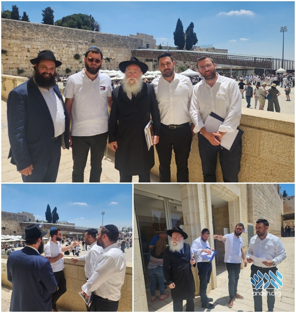 Joining were Rabbi Shmuel Greisman, Chairman of the Torah Writing Committee, renowned event producers Meni Lerrer and Yisrael Nabul of “Tzvaim Productions,” representatives from the Office of the Rav Hakotel Rabbi Shmuel Rabinowitz, and the CEO of Tzach in Yerushalayim Rabbi Noam Rot.