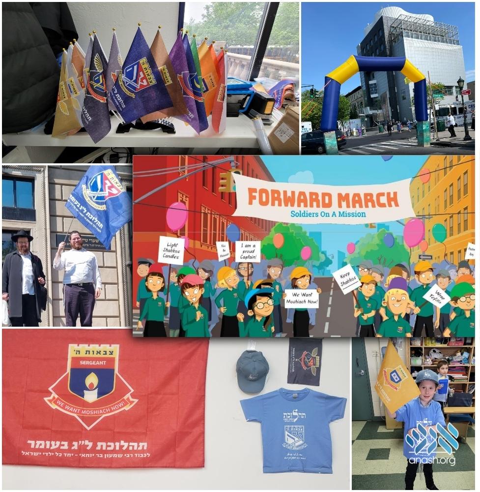 The march will start in front of Oholei Torah, leaving at 10:00, passing by 770, and turning down Albany, all schools will be marching to Albany, watch the parade pass in front of them and join in behind on the way to the park.
