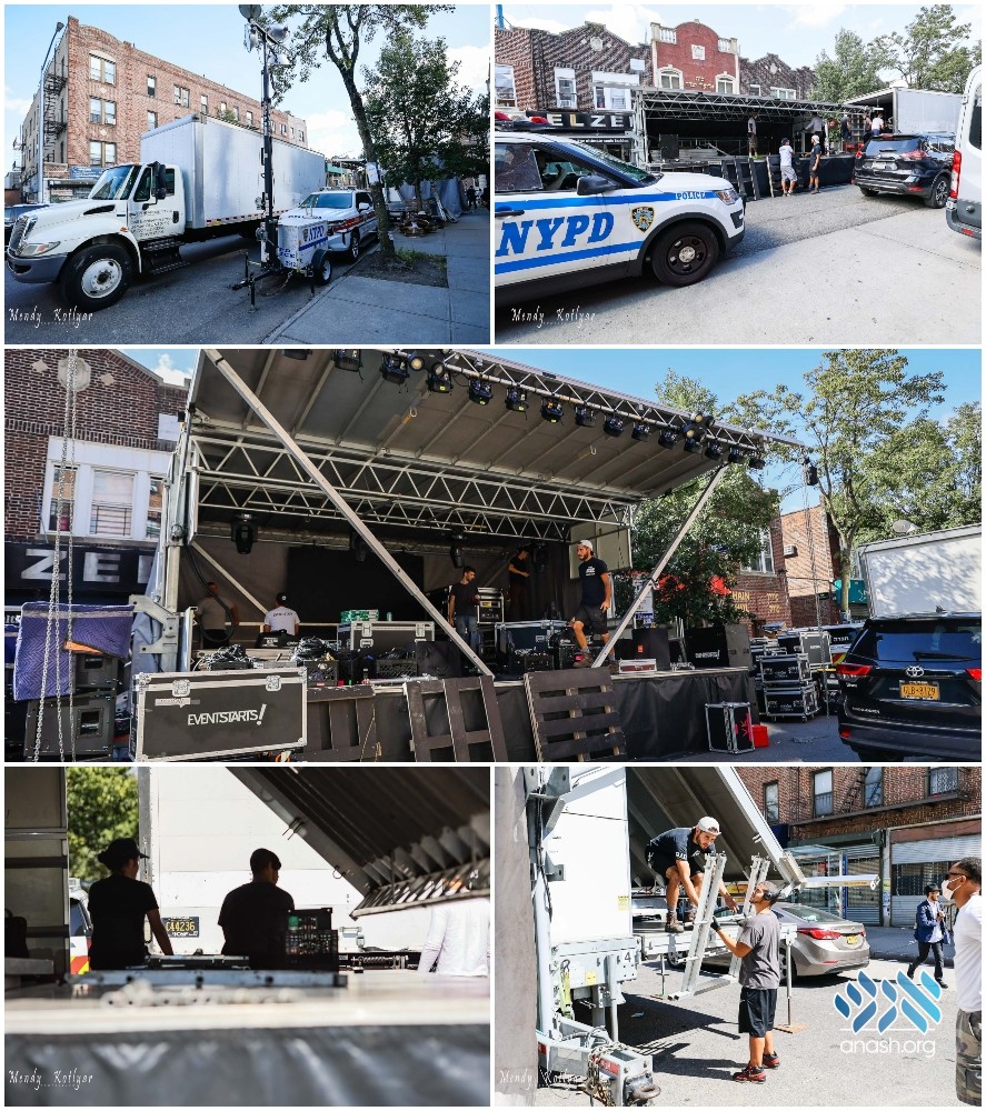 Workers were seen assembling a grand stage on Kingston Avenue on Monday, in preparation for the grand Simchas Beis Hashoeva celebrations which will begin tonight and continue on Wednesday night with live music and many new features for this year.