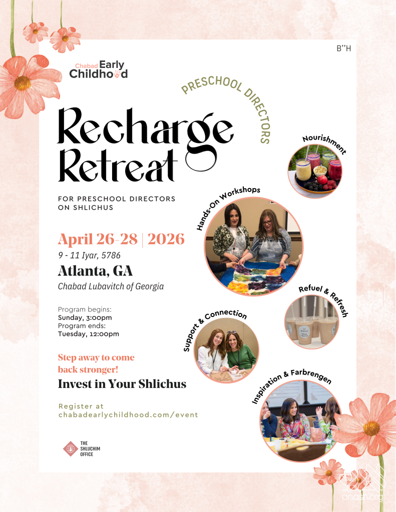 As Chabad Early Childhood gears up for its Annual Directors Recharge Retreat, set for April 26–28 in Atlanta, Georgia, excitement is building as the Shluchim Office unveils new details and inspiring enhancements to this year’s highly anticipated experience.