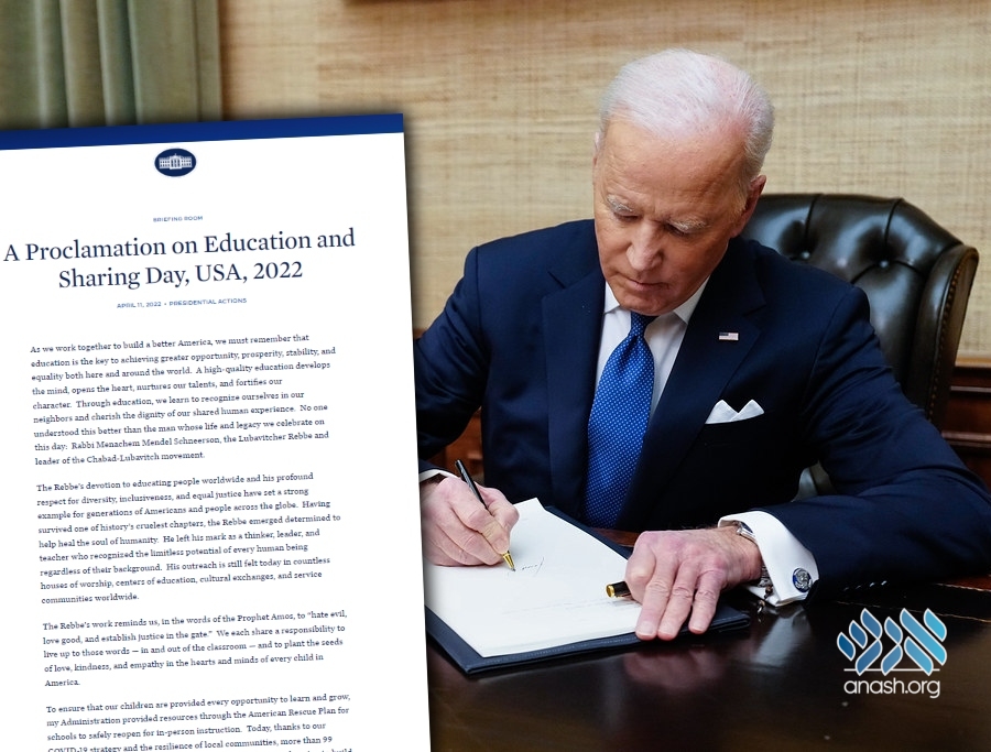 President Joe Biden honored the Rebbe‘s birthday on Yud Alef Nissan by declaring it to be ‘Education and Sharing Day USA’, following the example of a long string of Republican and Democratic presidents since 1978.