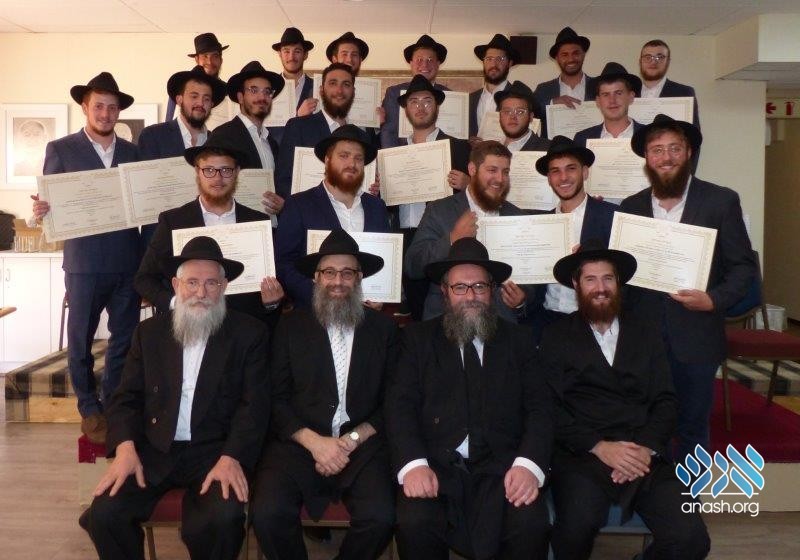 Those who were present for both years received semicha on the ‘regular’ components, while the semicha of those who had joined the ‘pre-semicha‘ included areas of halacha such as tefilla, mezuza, tevillas keilim and other practical areas of halacha.
