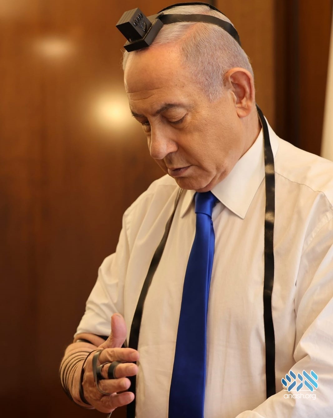 Prime Minister Bibi Netanyahu on Sunday posted a photo of himself on his X account donning tefillin, writing: