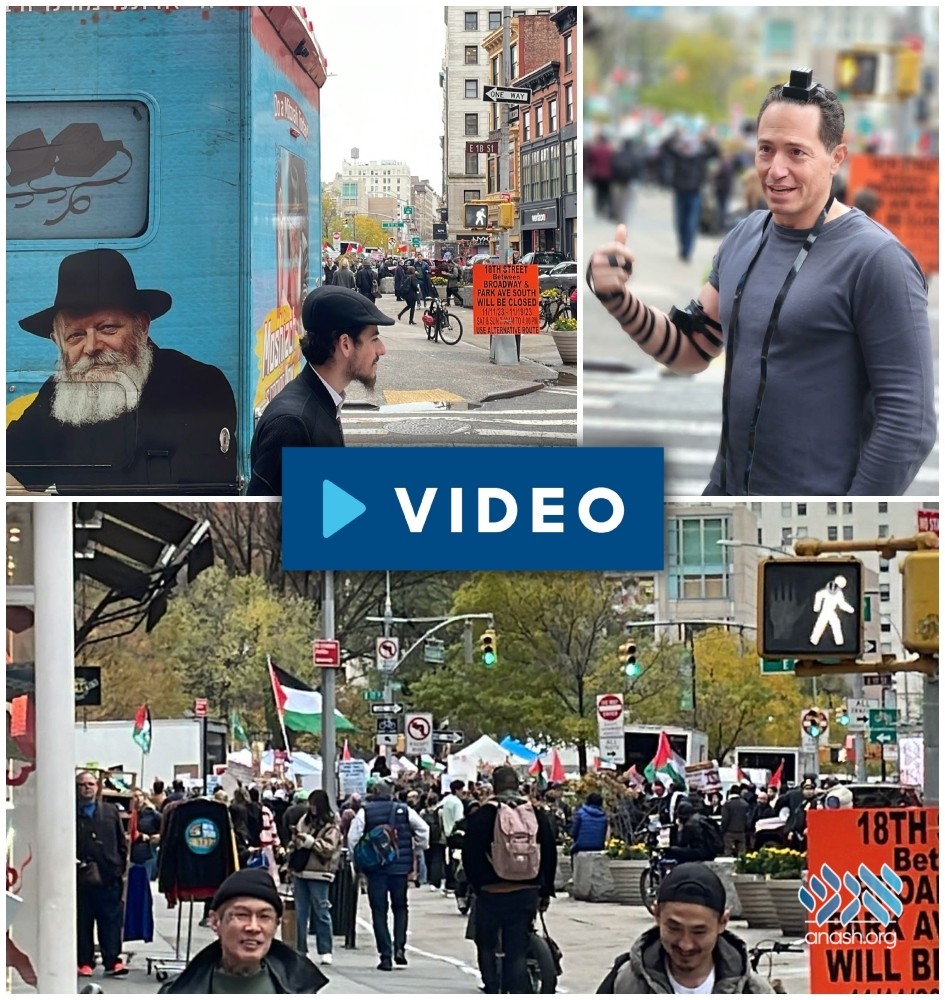 Today, Wednesday, they arrived at their normal location for Wednesdays – Union Square, and set up shop. Just a few blocks away, a very different type of event was taking place: A protest in support of “Palestine” and calling for a ceasefire which will hand Hamas a victory.