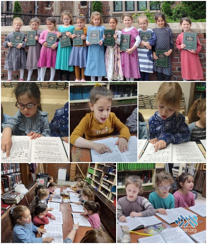 Pre1Alef girls from Beis Chaya Mushka in Crown Heights who just celebrated their siddur party went to 770 to Daven with their new siddurim.