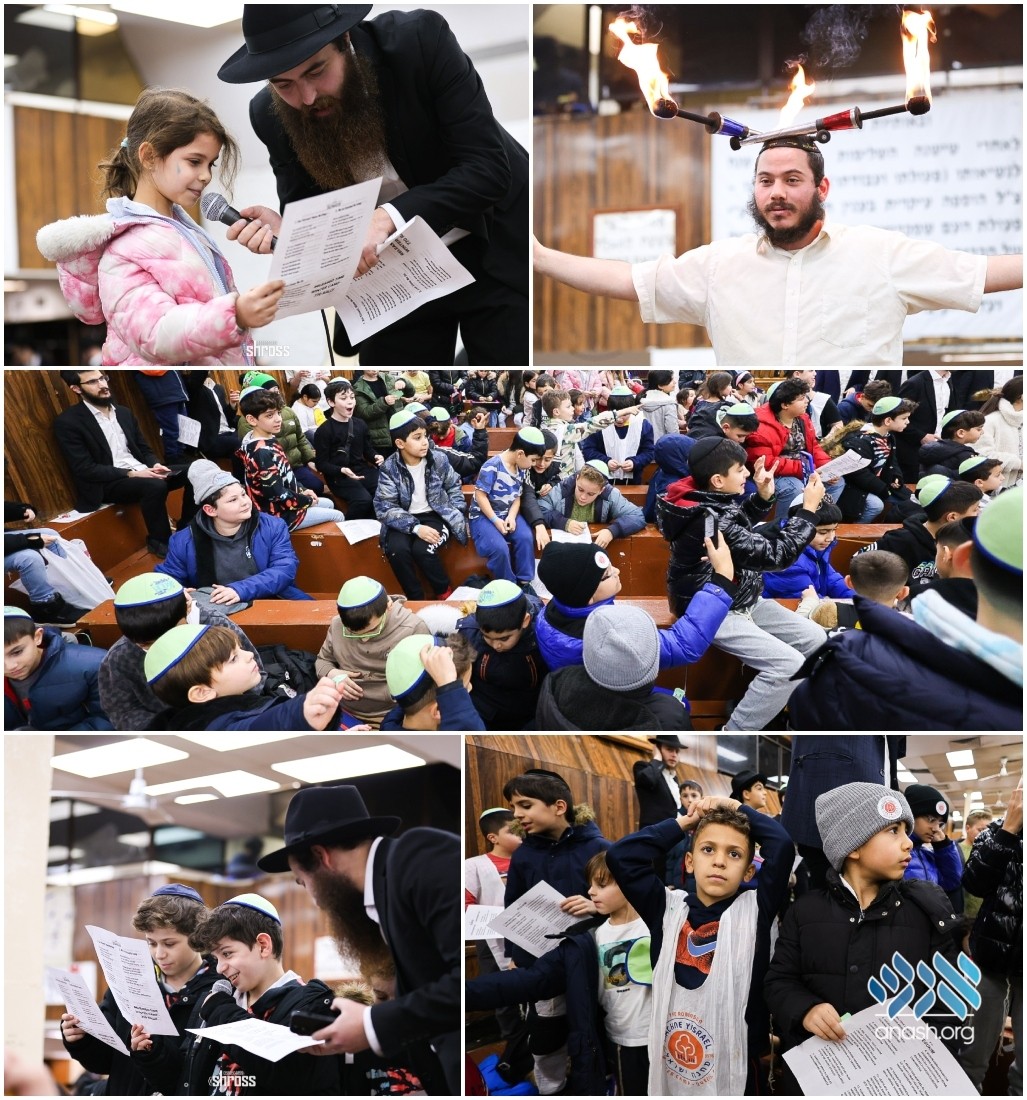 Public school students who are taking part in Release Time program’s winter camp joined a lively rally in 770 on Tuesday afternoon, with bochurim leading them in Torah, tefillah and tzedaka.