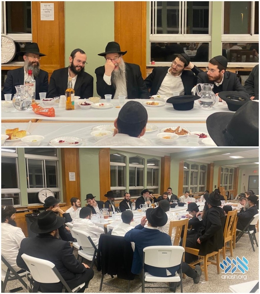 Bochurim and hanhala alike enjoyed the farbrengen, which went on for many hours.
