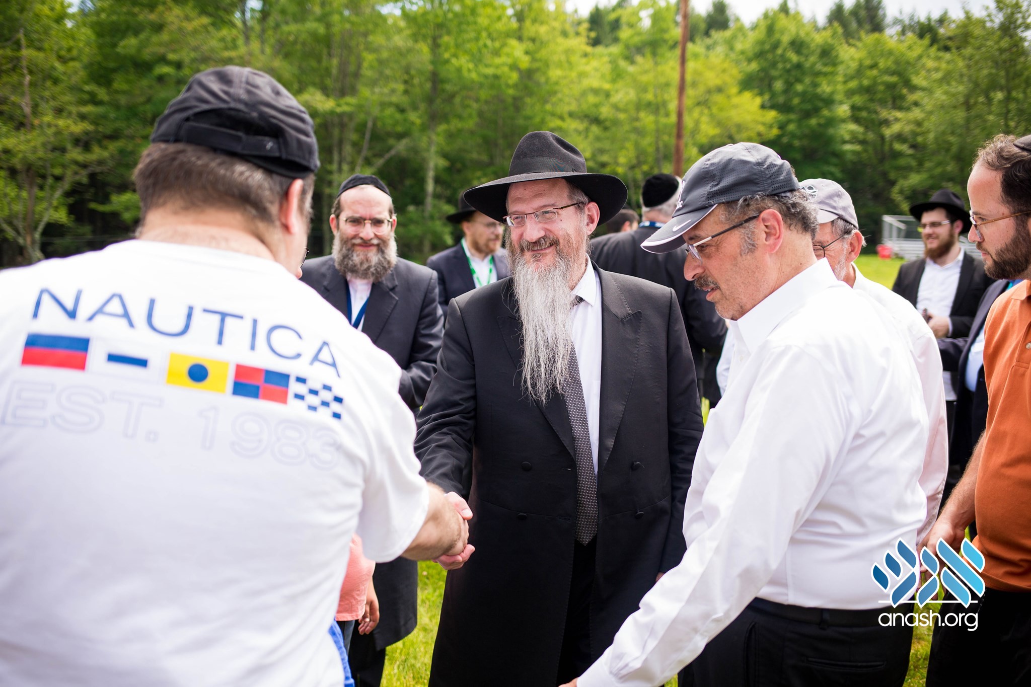 Last minute arrangements were made by the well know askan, Eli Rowe, to “chopper” Rabbi Lazar to Camp HASC on Sunday. A tour of the camp was led by Abe Eisner, HASC Center board president, Shmiel Kahn, camp director and Reb Juda Mischel, camp executive director.