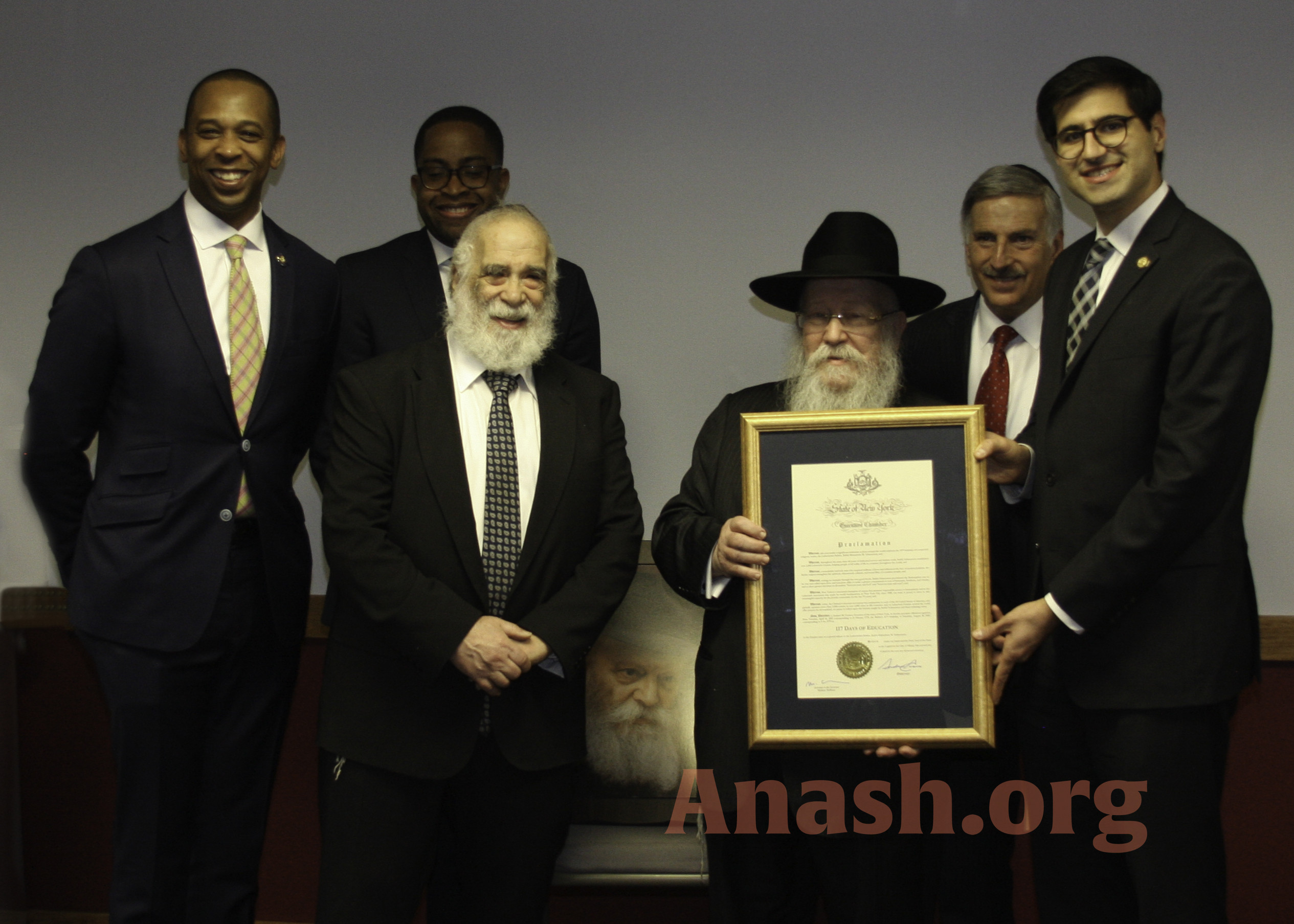 The proclamation of Governor Andrew Cuomo was read by his special representative to the Jewish Community Michael Snow. Michael Snow shared how the Rebbe plays a very important role in his personal life. Assemblyman Walter Mosley and Senator Zellnor Myrie who represent Crown Heights in the Assembly and Senate, both spoke with enthusiasm about their warm relationship with the Jewish Community of Crown Heights, which is a model of peace and coexistence.