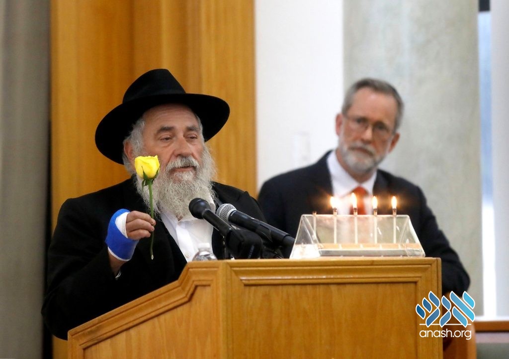 Rabbi Goldstein will be joined at the White House gathering by Oscar Stewart, the combat veteran who confronted the shooter and forced him to flee, Jonathan Morales, the off-duty border patrol agent who engaged the shooter as he fled from Stewart, Rabbi Yonah Fradkin, Regional Director of Chabad of San Diego, and Rabbi Yeruchem Eilfort of Chabad of La Costa.