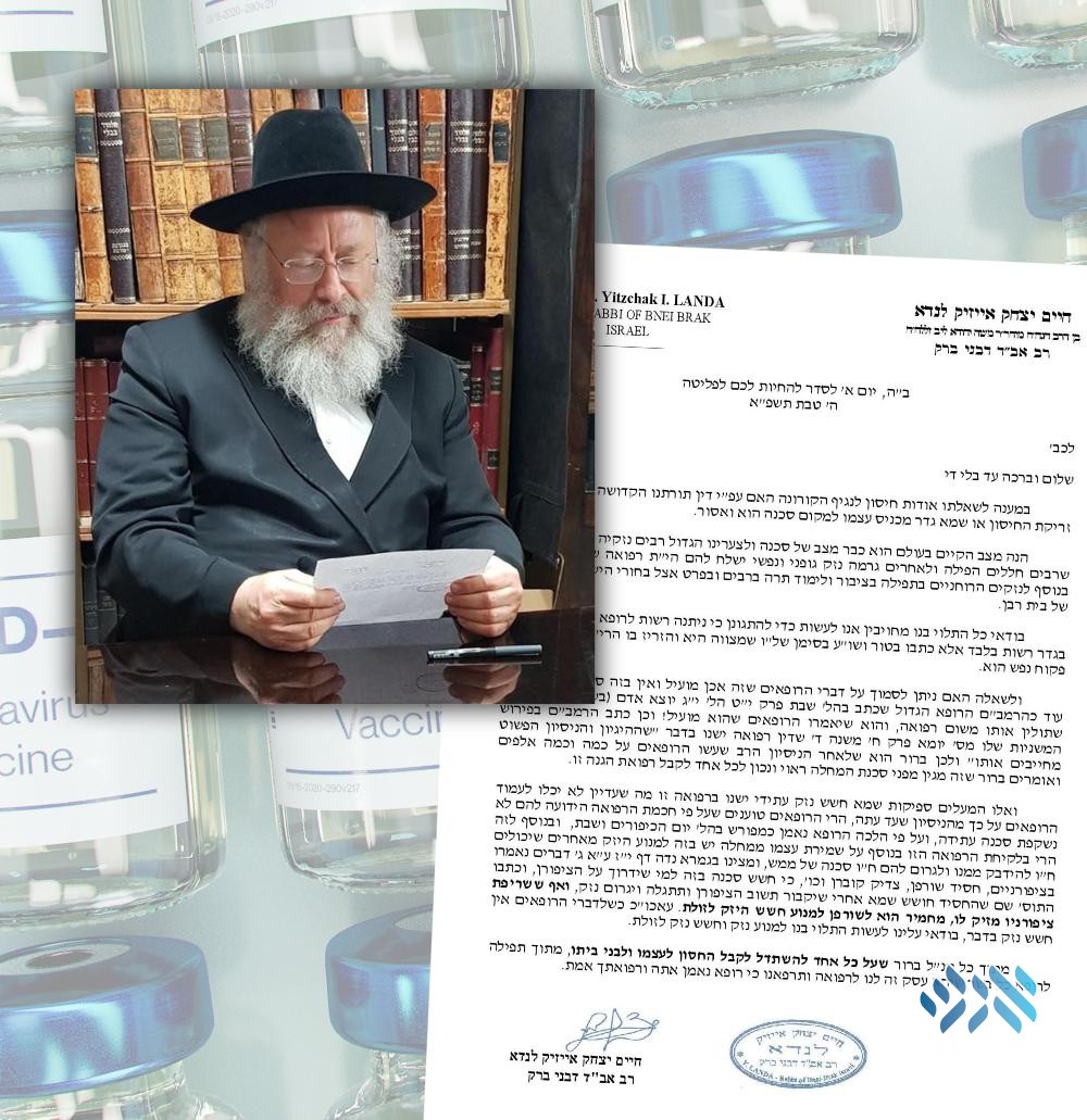 As this newest stage of the fight against the pandemic begins, rabbonim around the world are debating the halachic implications of the new vaccine. Weighing in in a letter released on Sunday, Hey Teves, Harav Yitzchak Eizik Landau, rov of Bnei Brak, empathically stated his position that everyone should take the vaccine themselves, and vaccinate their household members as well.