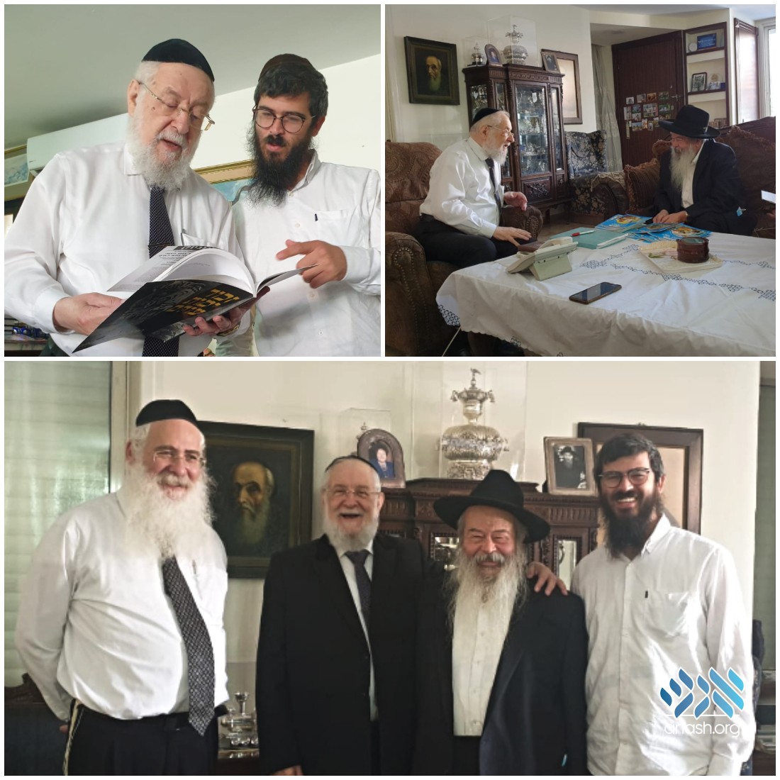 Accompanied by his wife and son R’ Shmuel Burkis, Rabbi Burkis visited Rabbi Lau in his home where they discussed the importance of providing children with quality Jewish reading material. The books that a child reads impact his educational development and growth for years to come. Rabbi Burkis also presented Rabbi Lau with some of Machanayim’s newest titles, which were printed this years after many years that no new titles were produced.