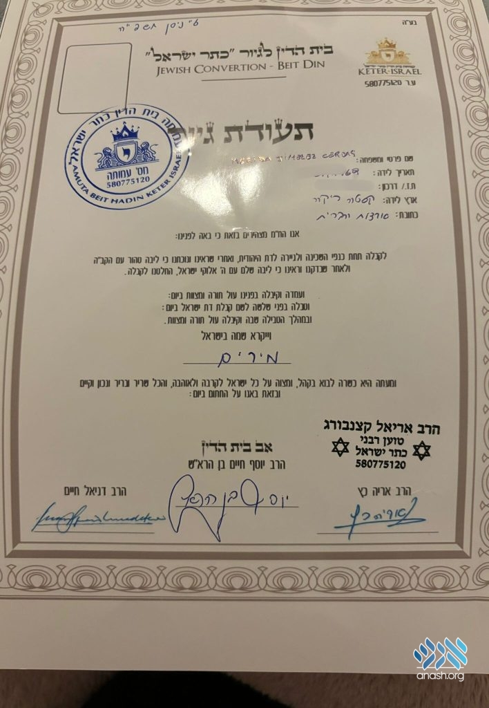 According to first-hand accounts reaching Yad L’Achim, Katzenberg offered foreigners “assistance” in obtaining documents attesting to their supposed conversion or officially recognizing their Judaism. In exchange for tens of thousands of shekels, he manufactured documents bearing forged seals from well-known courts, and even claimed that the foreigners had undergone official conversion in Eretz Yisroel.