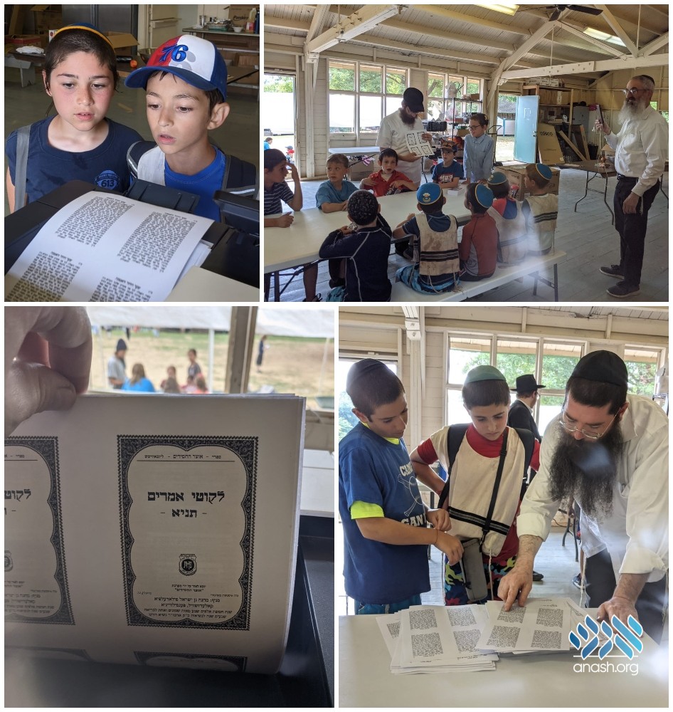 The campers participated in the Tanya printing by learning from the first copy and reciting pesukim.