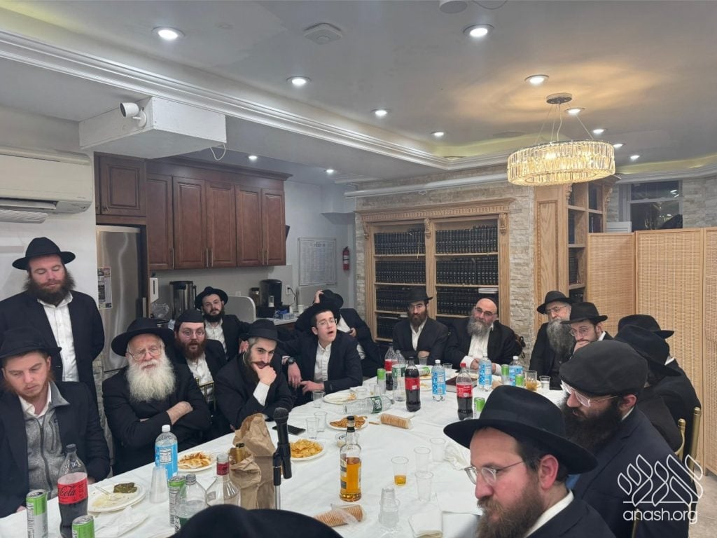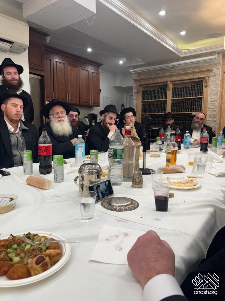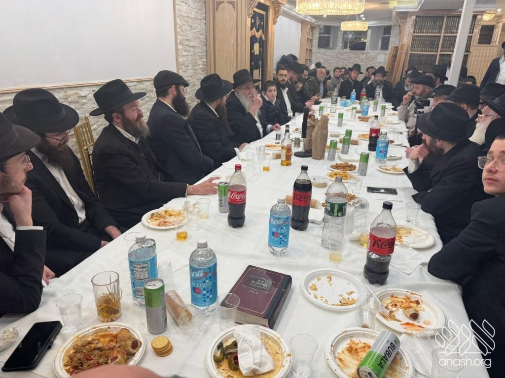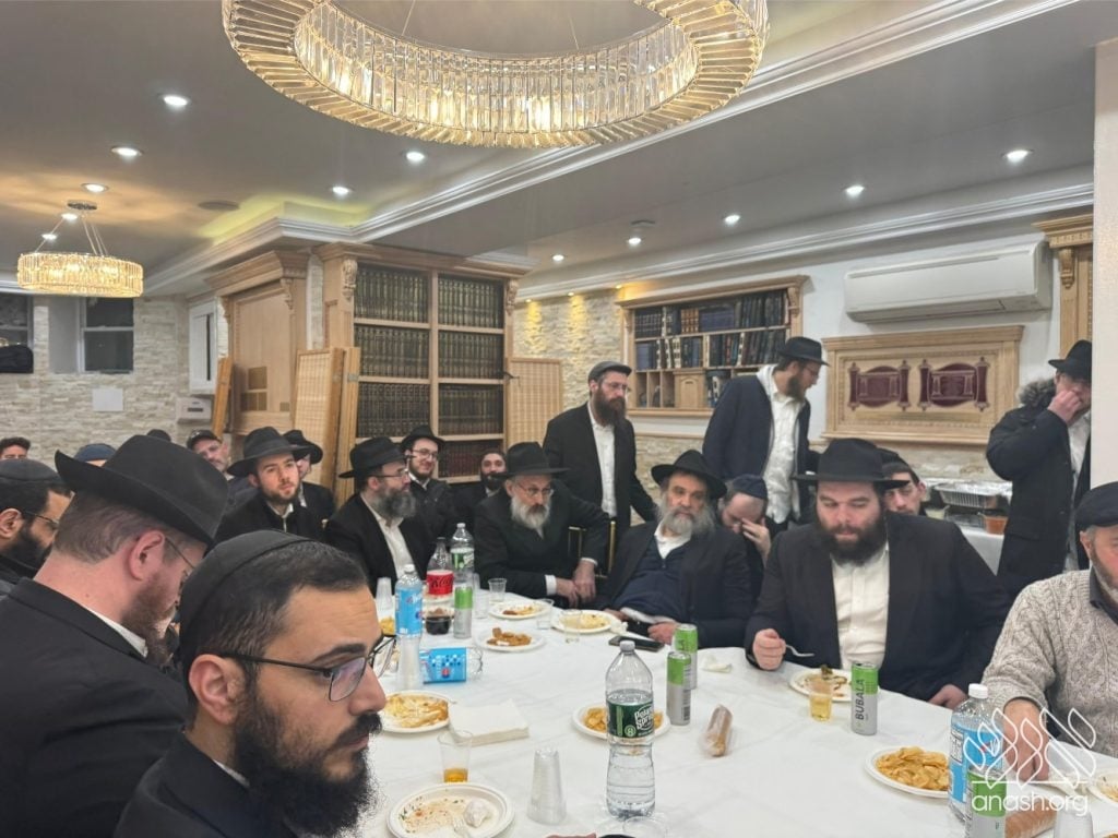 A large crowd of Crown Heights Anash together with many guests filled the Lincoln Place Shul and Beis Hamedrash on Wednesday night for a special seuda and farbrengen marking Yud and Yud-Alef Shevat, the hilula of the Frierdiker Rebbe, and 76 years since the Rebbe began the nesius.