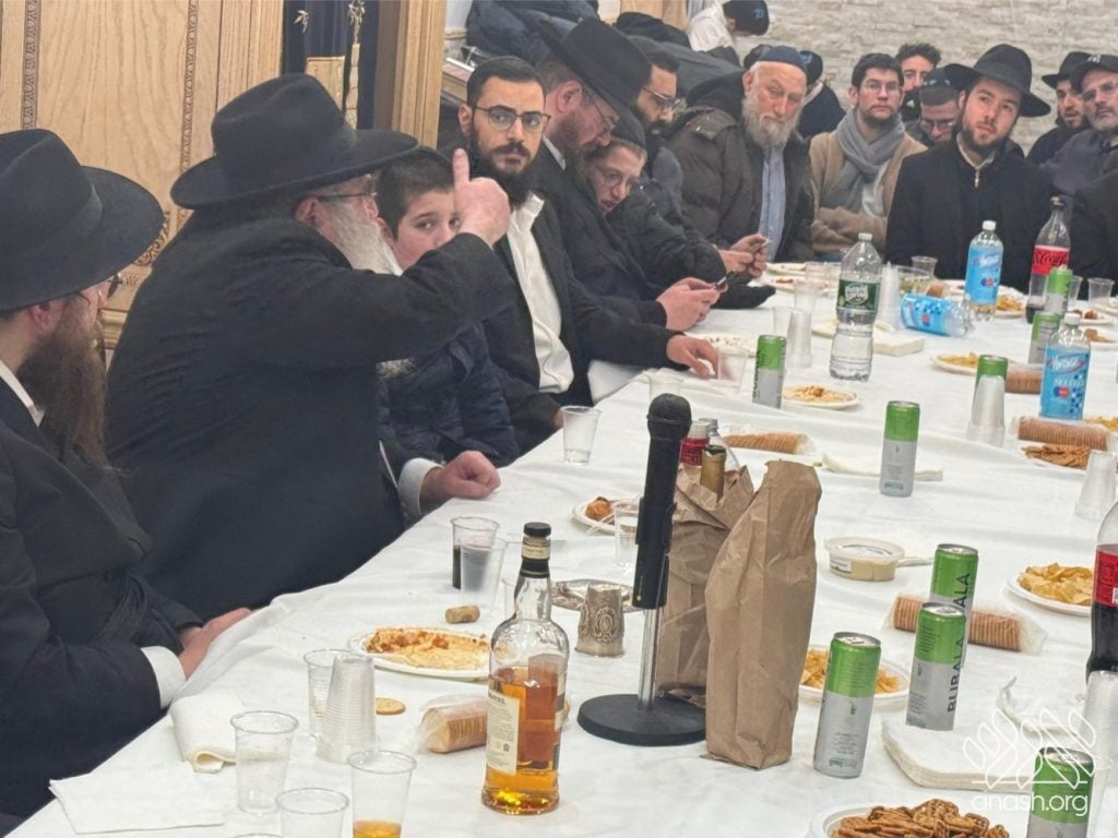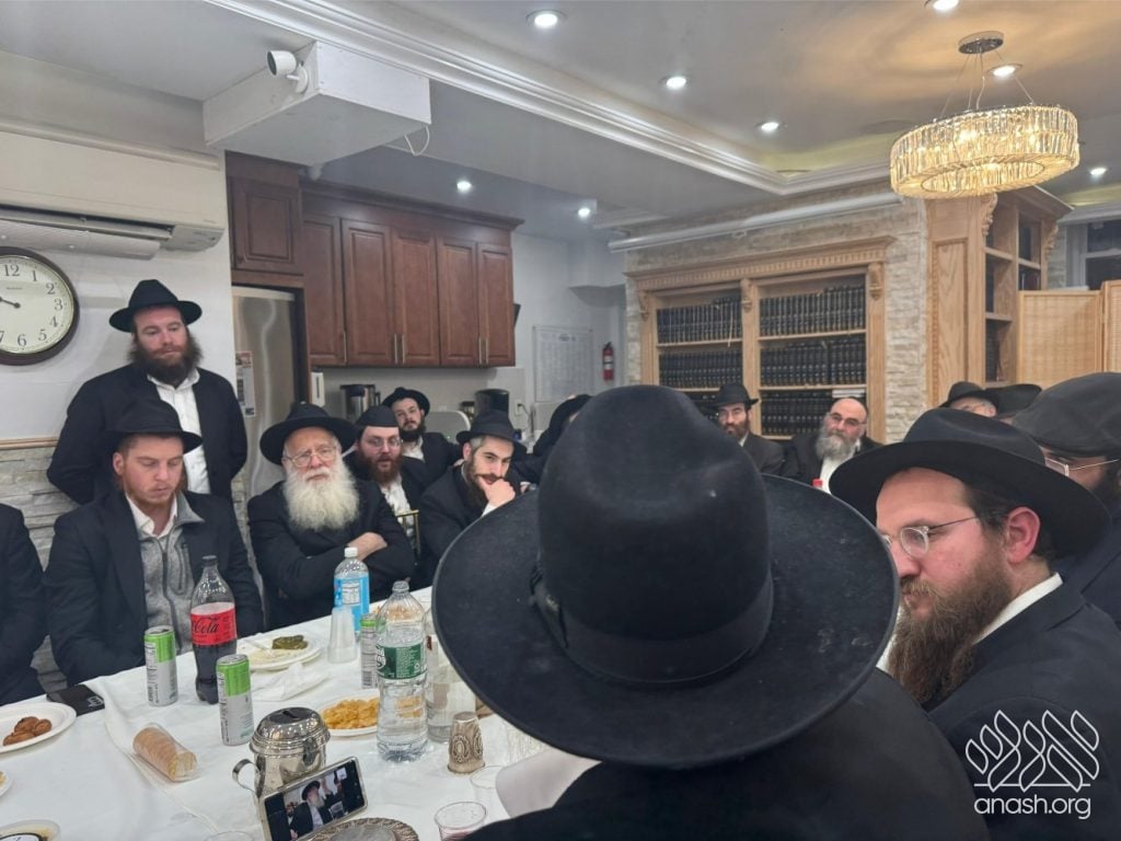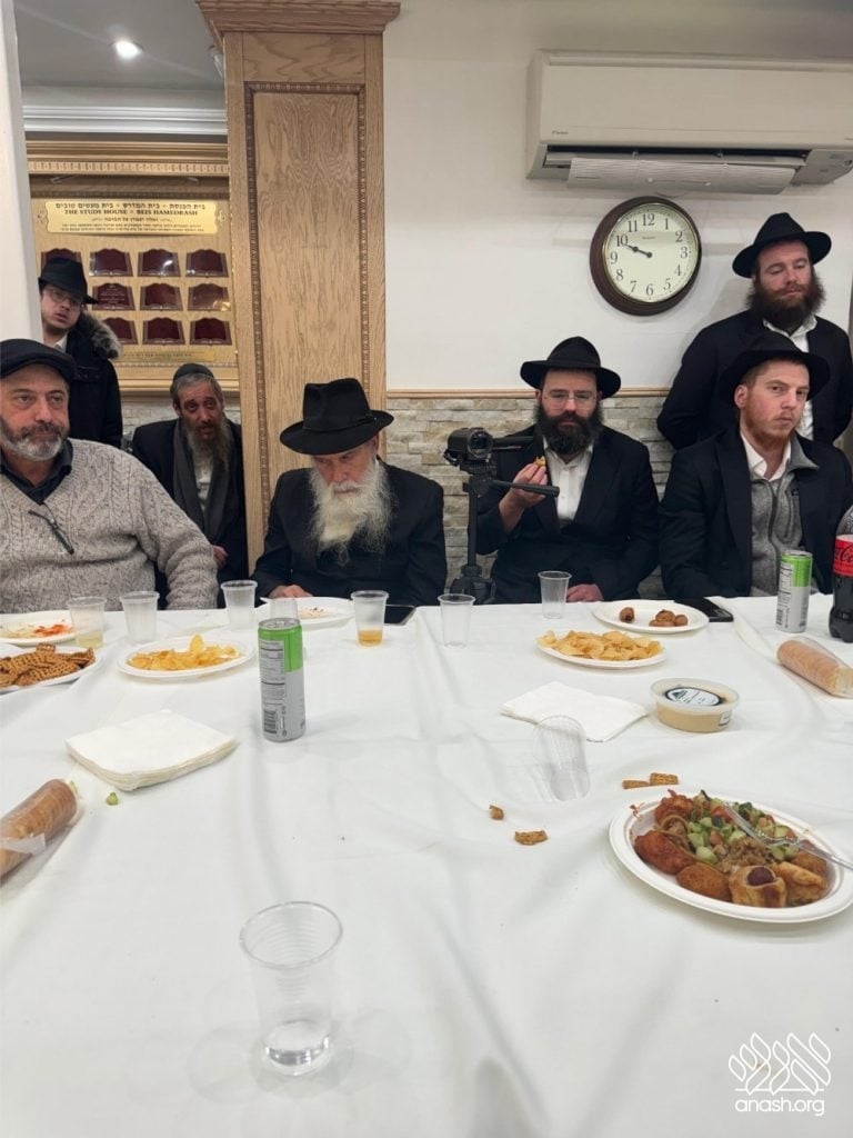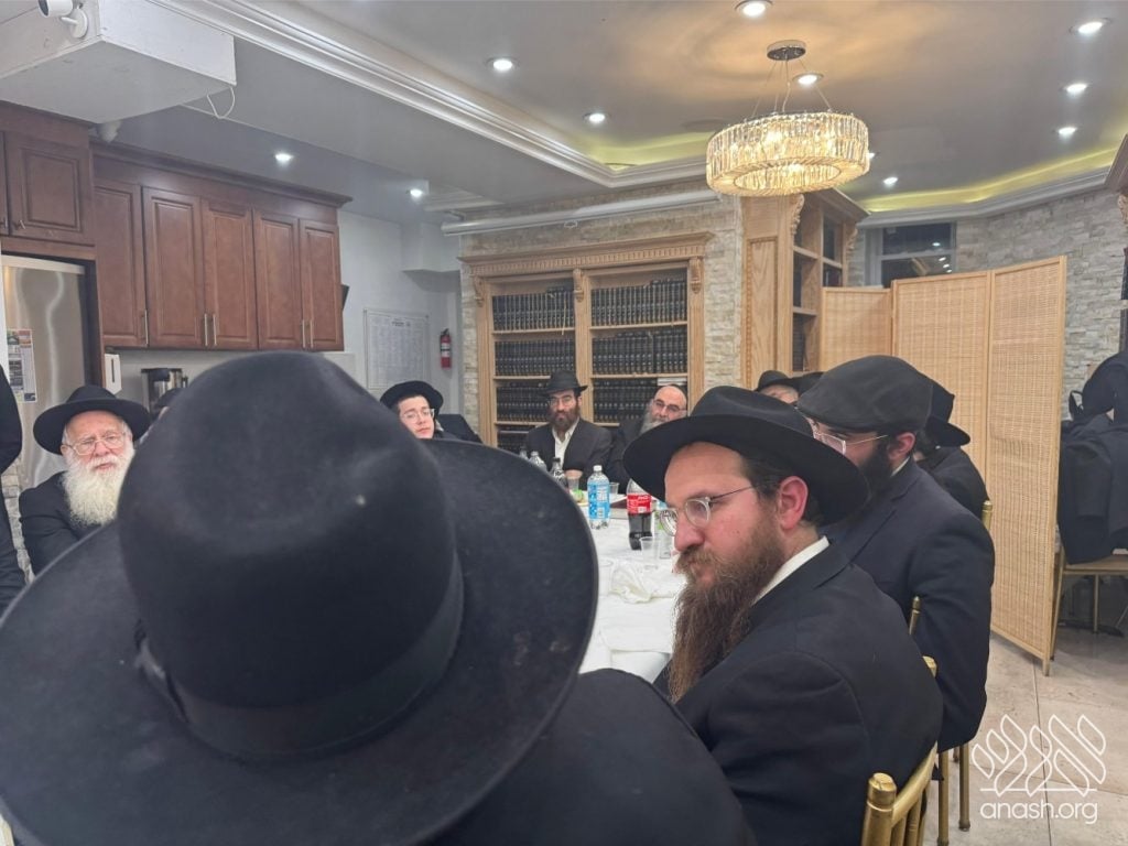 A large crowd of Crown Heights Anash together with many guests filled the Lincoln Place Shul and Beis Hamedrash on Wednesday night for a special seuda and farbrengen marking Yud and Yud-Alef Shevat, the hilula of the Frierdiker Rebbe, and 76 years since the Rebbe began the nesius.