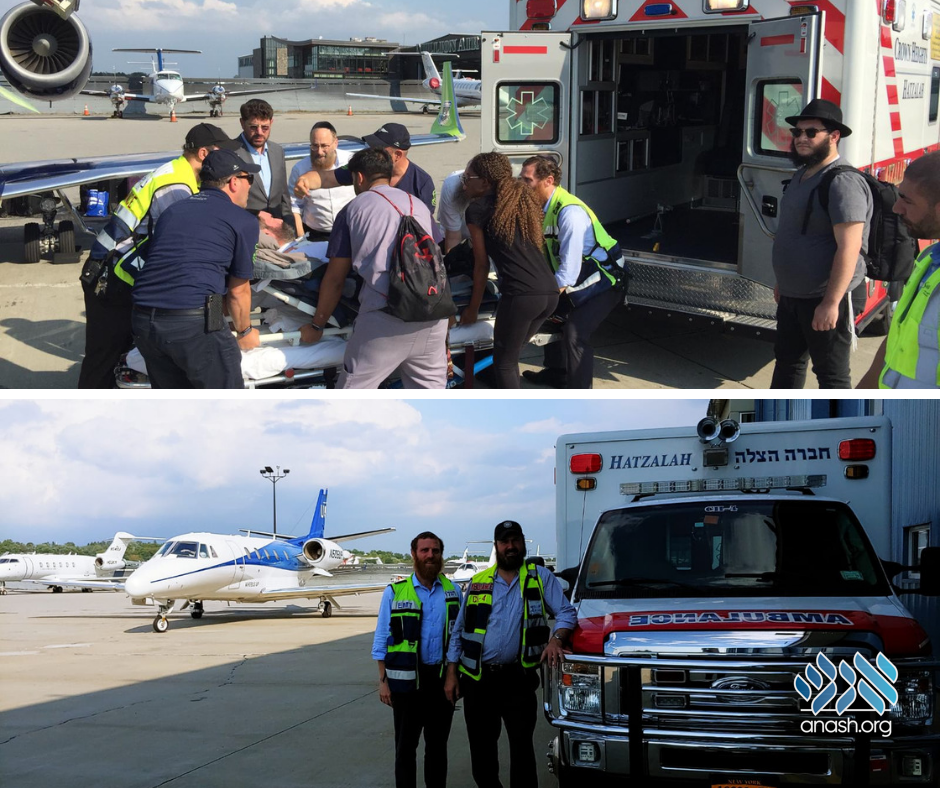 Friends were on hand to greet Rabbi Yitzi Hurwitz as he landed Wednesday afternoon at Westerner Airport. The Hurwitz Family Fund Vaad wrote a heartfelt letter thanking HatzolAir for making it happen.
