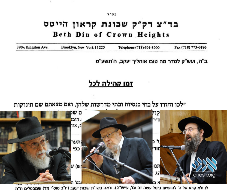The three Rabbonim of the Crown Heights Beis Din have jointly called for an increase in Tefilla and Tzedaka during the upcoming fast day of Shiva Asar B’Tamuz to avert the regulations to traditional chinuch that New York State Department of Education seeks to impose.