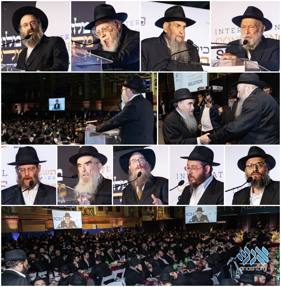 Thousands of shluchim gathered on Motzei Shabbos for the Melave Malka of the Kinus Hashluchim, with speakers delivering emotionally-charged addresses and inspirational calls to action.
