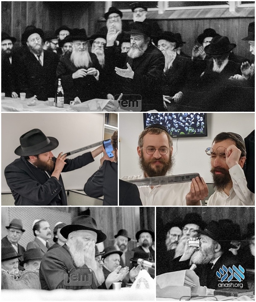 Through tireless efforts by Rabbis Mendel Gourarie, Motti Hazan, and Memkeh Schmukler, the vintage film strips were scanned and restored, and the timely Purim photos were made available online, with the rest to be published in the coming weeks.
