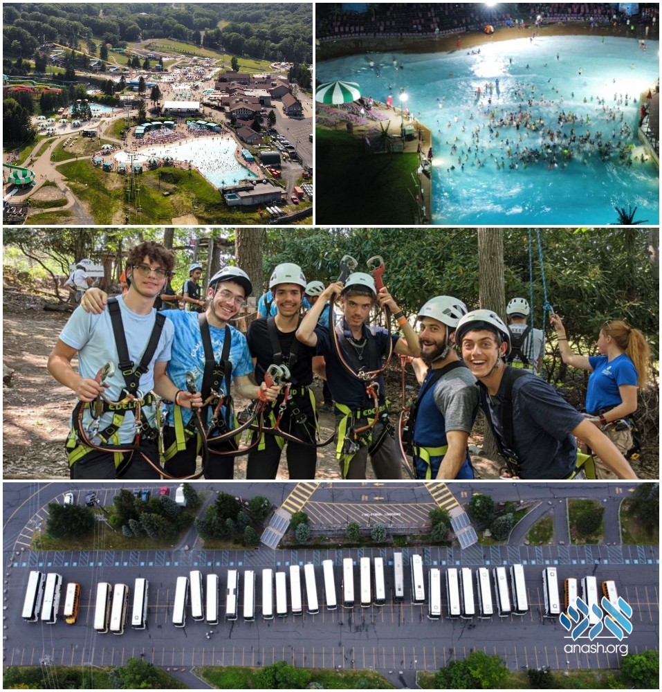 A downfall during a waterpark trip couldn’t dampen the spirits of the campers and staff at Camp L’man Achai, who instead turned it into an opportunity to hold an impromptu kumzitz with campers from other camps.