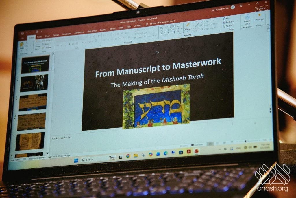 Anash of Toronto gathered at 770 Chabad Gate for a beautiful Siyum HaRambam, with JLI’s Rabbi Mordechai Dinerman who led a fascinating visuals presentation on the Rambam’s manuscripts and how the Rambam continually revised his work.