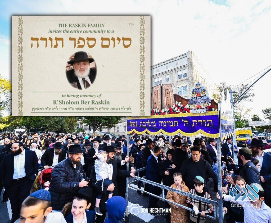 The Raskin family invites the entire Crown Heights community to a Siyum Sefer Torah celebration on Thursday, Lag B’omer, written in memory of Reb Berel Raskin.