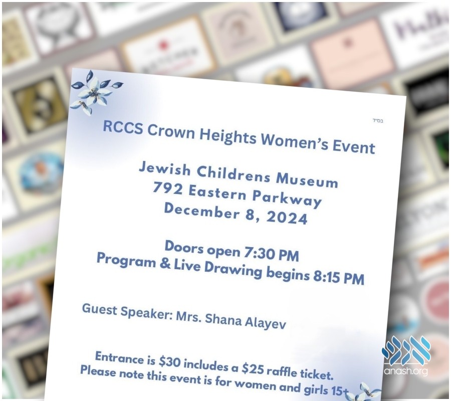 A unique and inspiring event will take place this Sunday in Crown Heights at the Jewish Children’s Museum. The evening will feature guest speaker Shana Alayev, musical entertainment by Rivky Borenstein, and a fantastic auction benefiting RCCS.
