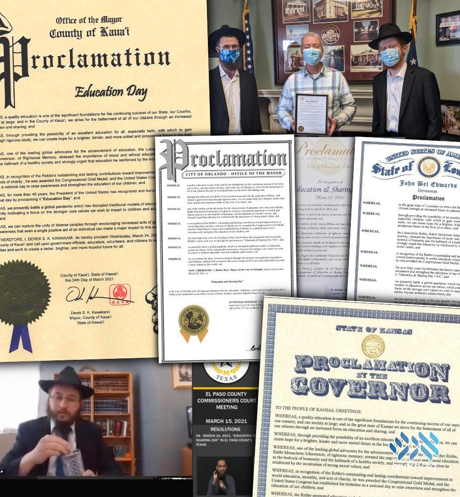 Ahead of Yud Alef Nissan this year, immense efforts are being put in by shluchim across America and even in Canada. In the days leading up to Yud Alef Nissan, tens of proclamations have already been issued, and intense efforts are underway to have Education Day declared in many more locations.