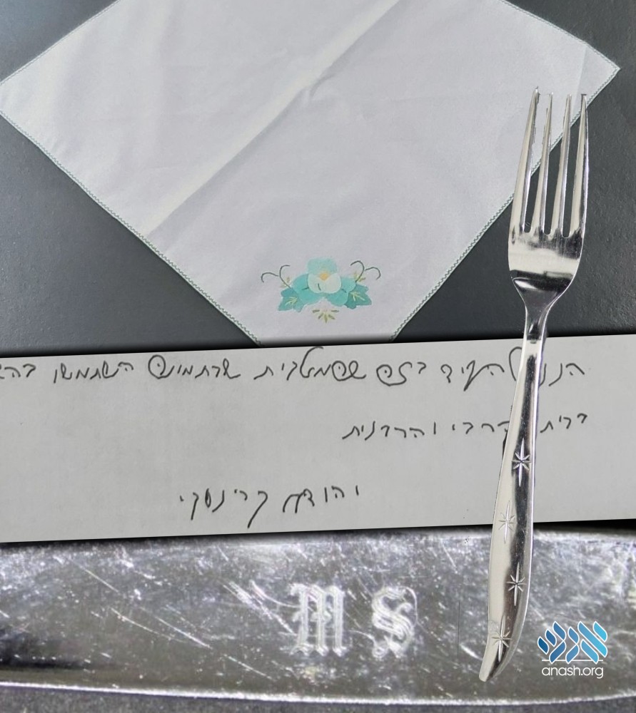A fork and a serviette that allegedly belonged to the Rebbe and Rebbetzin is being sold in an Israeli auction house. A document signed by Rabbi Yehuda Krinsky attests to their authenticity.