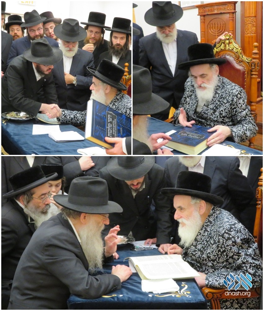 During the meeting, Ezagui presented the Viznitzer Rebbe with the sefer ‘Dvar Malchus’. The Vitznitzer Rebbe offered strong words of praise for the sefer while showering its author with brachos. He then handed Ezagui $200 as his personal participation in the printing of the sefer.