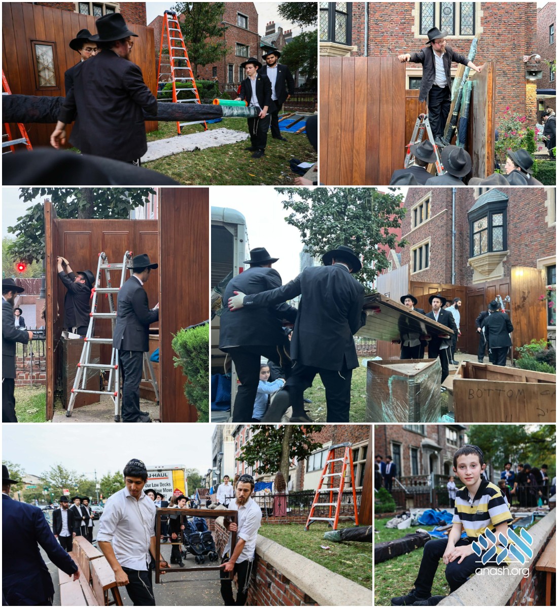 A group of bochurim dismantled the Rebbe’s sukkah on Sunday and prepared it to be stored away until it will be needed again, next year.
