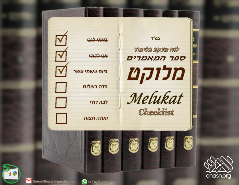 Following the success of the Likkutei Sichos Checklist spreadsheet, a new user-friendly Melukat Checklist will help you keep track of every maamar you learn.