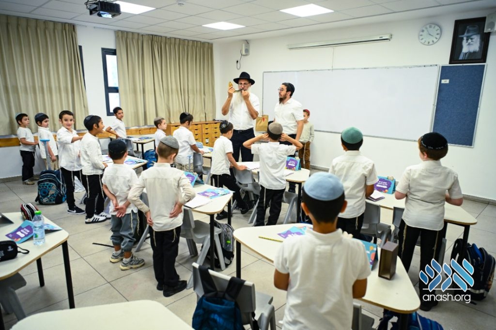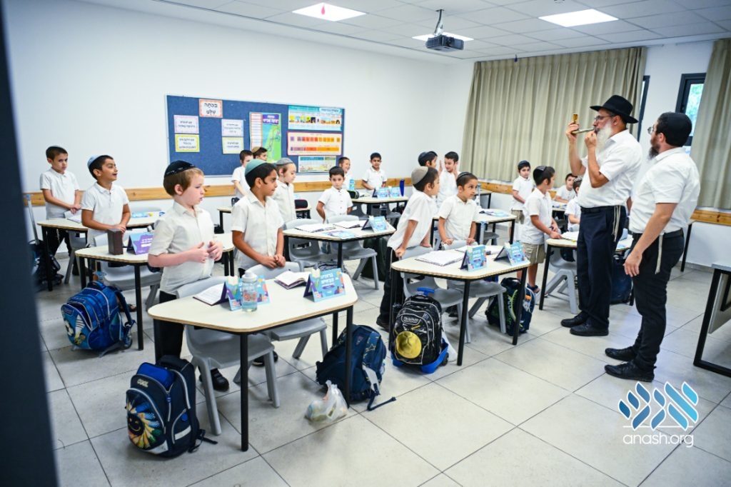 After the sounding of the shofar, all gathered in the Cheder’s gymnasium for the moving Knesiah LeCheder – Entering the Cheder ceremony, led by the Mara D’asra, Rabbi Menachem Mendel Gluckowsky, who has been conducting the program for many years in his uniquely heartfelt manner.