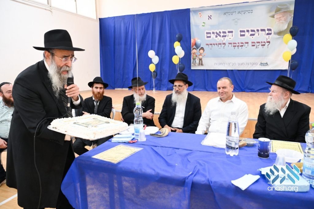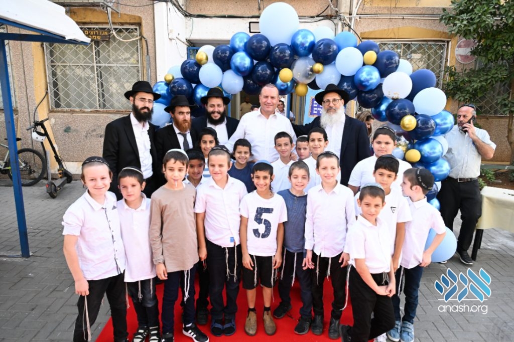 Colorful balloons and joyous niggunim greeted the hundreds of students at the Chabad Cheder in Rechovot with the participation of the city’s mayor. Rabbi Menachem Mendel Gluckowsky warmly welcomed the young children wrapped in talleisim for their Hachnasa LeCheder.