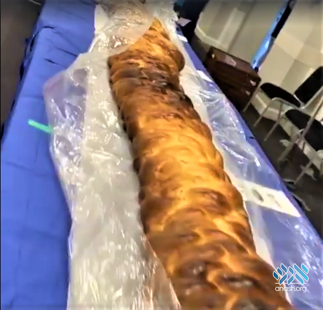 The record-setting challah clocked in at more than 32 feet long and required over 150 pounds of dough and ten hours to bake.
