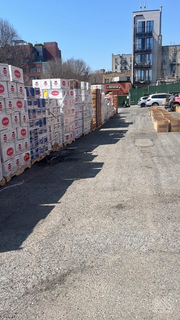 A massive Pre-Pesach Kimcha D’Pischa food distribution organized by Chamah took place on Thursday, in the parking lot of Bais Rivkah at 435 Montgomery St., drawing what was described as the largest Pesach food distribution Crown Heights has ever had.