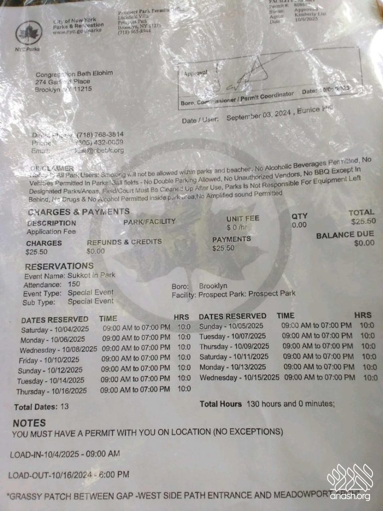 Local Jewish residents who passed by expressed concern that such a display, in a public and heavily trafficked area, could easily mislead onlookers. “It looks like a real sukkah, but anyone who knows the halachos can see that it’s not kosher,” one Crown Heights resident told Anash.org. “It’s important to make people aware, since so many Yidden pass it during Chol Hamoed visits to the park.”