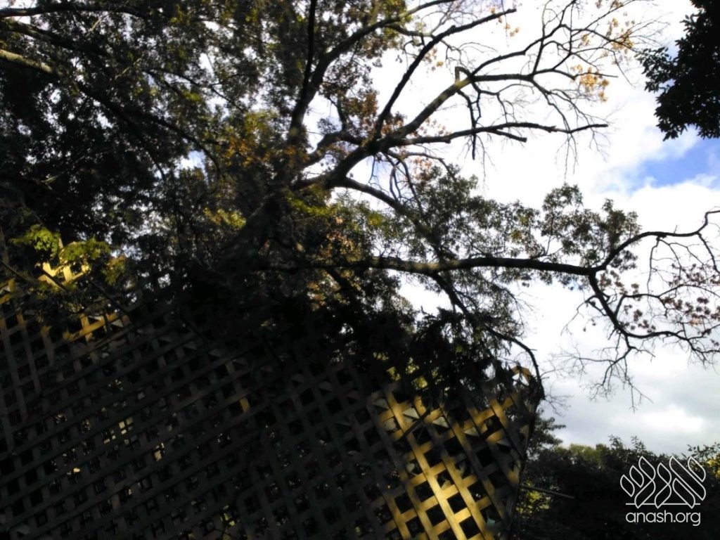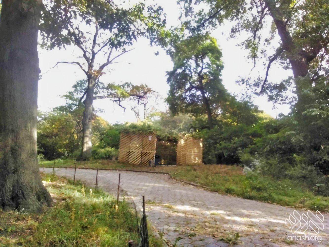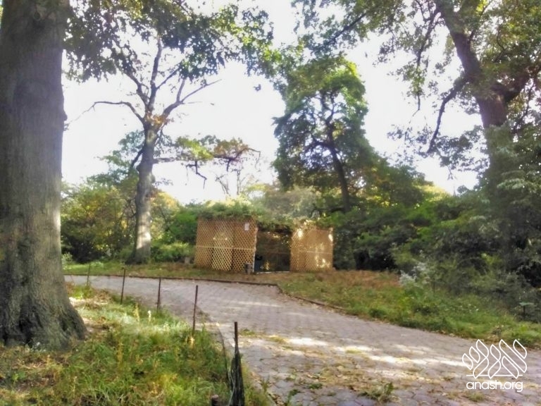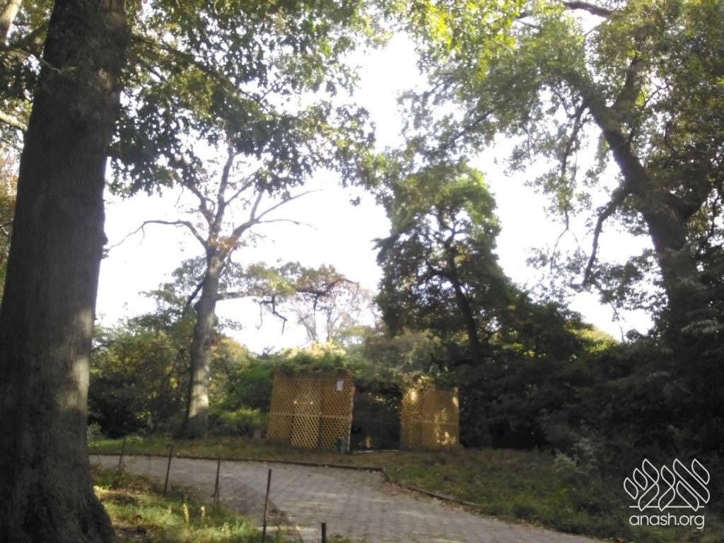 The sukkah is located just off the main path near the entrance used by cyclists and runners, along a smaller trail on the left side. A bit further down, under a canopy of trees, stands the structure whose sechach is entirely shaded, rendering it invalid according to halacha.