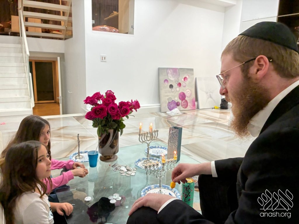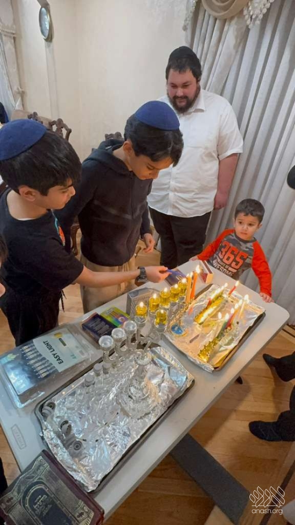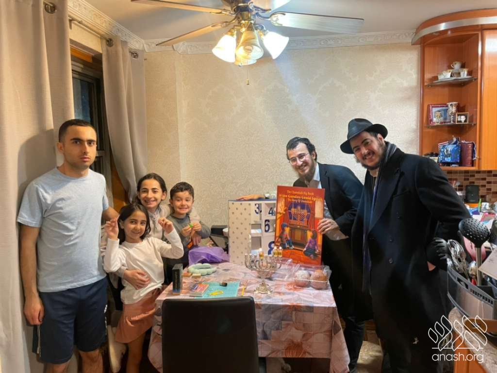 Each party followed a simple yet powerful format: the teachers gathered local families together with their friends and neighbors to light the menorah, sing Chanukah songs, play dreidel with the children, and enjoy donuts and latkes. Every child received a surprise Chanukah gift box, and many homes turned into long-night inspirations, where families asked questions, shared stories, and connected in a meaningful way.