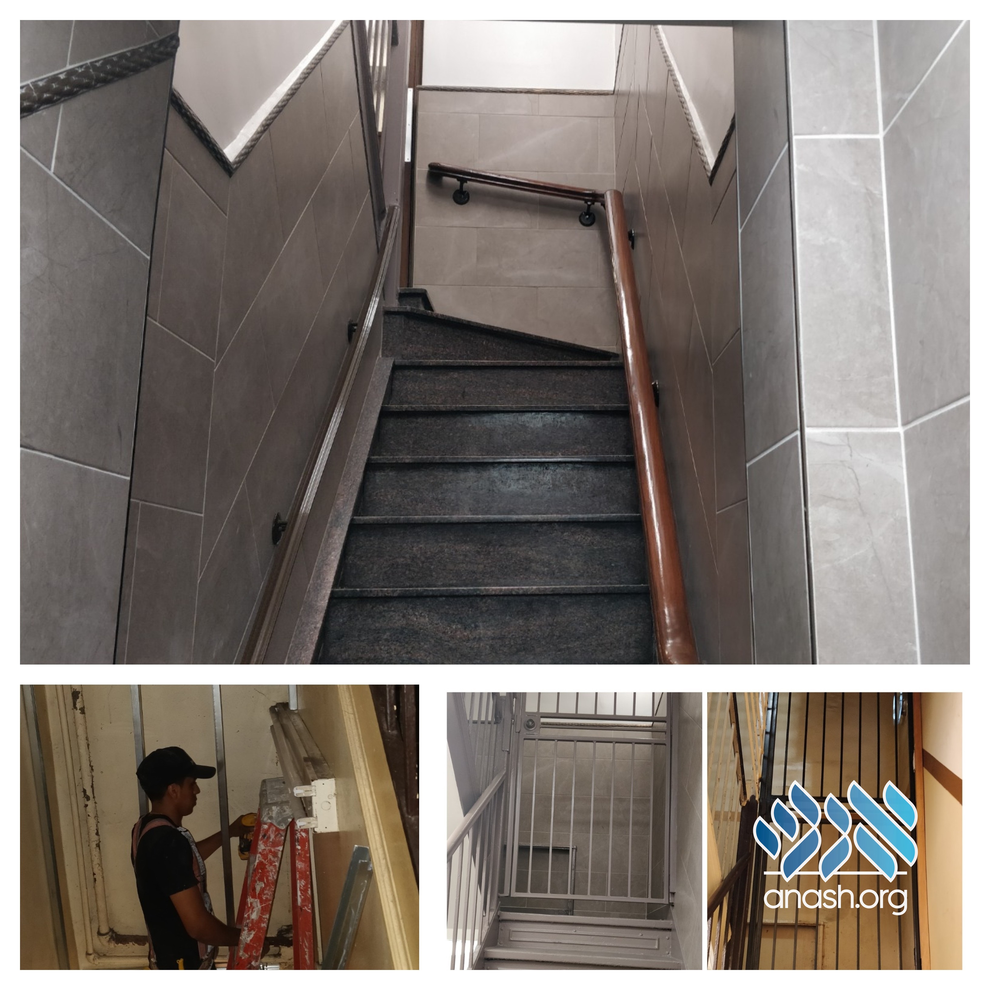 Vaad Bedek Habayis, headed by Rabbi Chaim Baruch Halberstam, recently completed renovations on the stairwell leading from the original 770 to the big shul downstairs.
